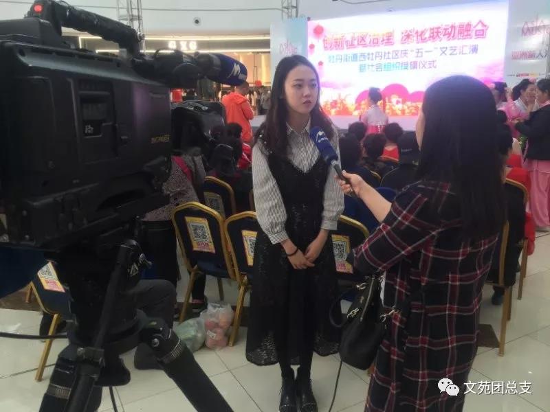 授旗仪式在万达广场的舞台举行,志愿者们着装统一,准时入场。在主持人的引导下,我们的志愿者迈着整齐的步伐,协助社区领导交接各队队旗。团总支副书记高浩歌代表文苑连心志愿服务队上台接受队旗,并接受了牡丹江电视台的采访,她表示:“文苑连心志愿服务队自成立以来就致力于服务学生、服务学校、服务社会的志愿事业,我们的领域涉及了环境保护、健康救济、关爱老年人、关爱未成年人、文化体育服务等多项领域,今天参加朝鲜民族社区的授旗仪式是我们走向社会迈出的第一步,我们将以此为基础,更加坚定地再志愿服务的路上大步向前!”