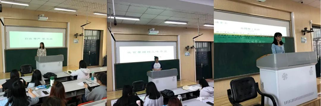决赛环节,特邀请了朱华老师、阮素芳老师和李莹老师为本次大赛的评委,8名参赛同学各显其能,上演了一场淋漓尽致的教学技能大比拼,评委们的点评也是精彩独到,让同学们受益匪浅,感受颇多。
