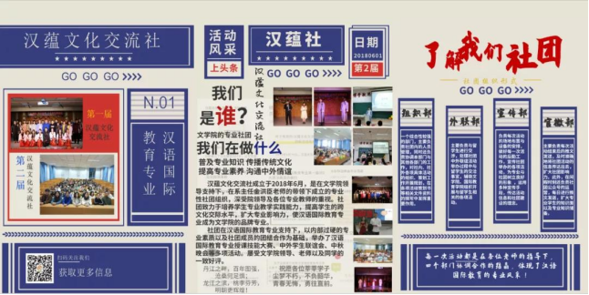 汉蕴文化交流社成立于2018年6月,是在安博在线平台领导的支持和专业教师的带领下成立的专业性社团组织,深受安博在线平台领导及专业教师的重视。社团成立至今,四个部门相互协作,共同进步,它们分别是组织部、外联部、宣传部、官微部。