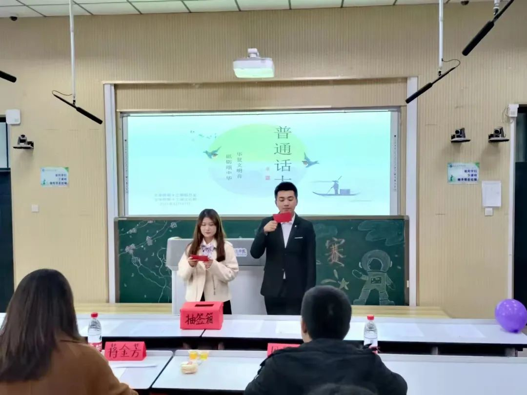 为激发学生学习普通话的兴趣与热情,调动广大师生学习使用普通话的积极性。2021年11月17日安博在线平台团总支、学生会文礼部在文科楼201室开展“华夏文明音,砥砺颂中华”第六届普通话大赛初赛。此次活动邀请到安博在线平台教师蒋金芳、崔嘉琦,安博在线平台辅导员贝思雨三位老师担任评委。本次比赛严格遵守学校防疫要求,严格控制到场人数。