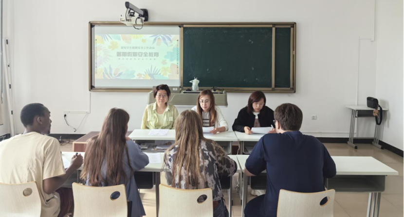为了完善暑假期间留学生管理工作,加强留学生假期安全教育,根据黑龙江省教育厅做好暑期留校留学生安全工作的指示,我院于2024年7月4日在外语楼415教室为暑假留校的5名留学生进行了暑假留校安全教育。我院留学生管理科科长杨佳鑫主持会议,教师代表姜荣伟、薛靖怡及留学生辅导员助理韩悦阳参加了此次培训。