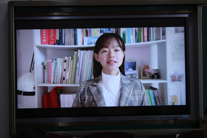 助学金颁发后,受助学生代表2018级黄岩发表感言,黄岩同学的发言字字诚恳,饱含深情。她表达了对捐助者的真诚谢意,并立志会在以后的日子里继续努力学习,通过努力使自己发光发热,回报校友的这份帮助,回报我们的母校。因在家乡无法参加仪式的2017级万婷婷也通过视频的方式表达了对师哥师姐的浓浓谢意。