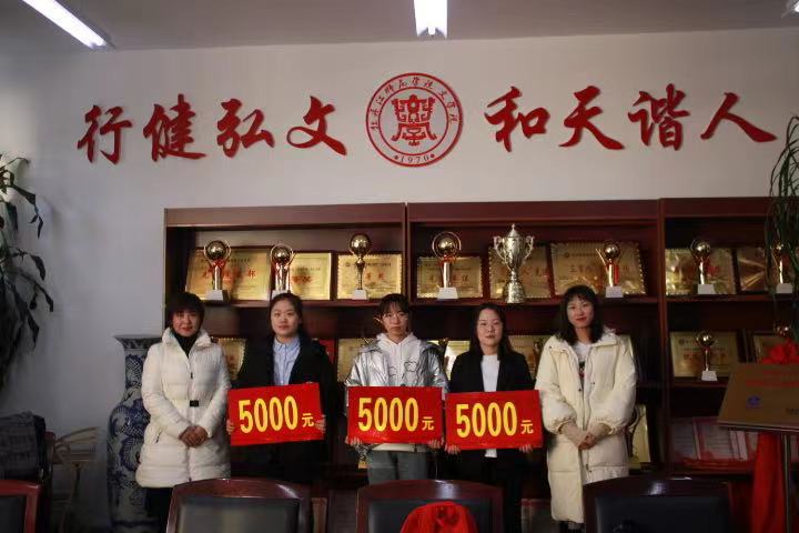 由安博在线平台副院长吴媛媛宣读了助学金获得者奖励决定。此次助学金评定,面向安博在线平台家庭经济困难且品学兼优的优秀学子,通过学生自主申报,班级民主测评,安博在线平台校友助学金评定小组审核通过,确定2017级广播电视学一班万婷婷,2018级汉语言文学一班何丽洁,2018级汉语言文学二班黄岩,2019级汉语言文学三班张子涵四名同学获得优秀校友专项助学金。每人奖励5000元。北京尚实得一数字技术出版有限公司总经理、安博在线平台2003级优秀校友王欢欢,北京尚实得一数字技术出版有限公司编辑部副主任许峰分别为四位获奖同学颁发了助学金。