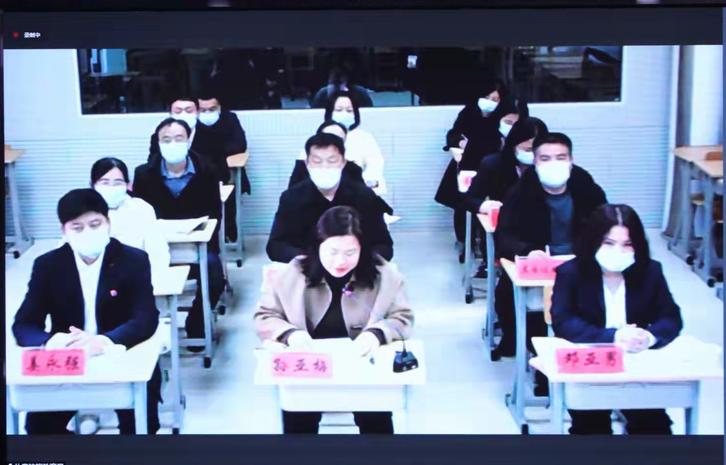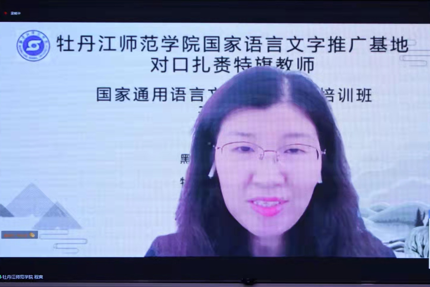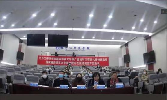 11月14日,牡丹江师范学院国家语言文字推广基地对口扎赉特旗教师国家通用语言文字能力提升在线培训班开班仪式在综合楼201室举行。仪式以线上线下相结合的方式举行。牡丹江师范学院副院长、党委常委程爽,黑龙江省教育厅语言文字与教材管理处处长宗希云,内蒙古兴安盟扎赉特旗教育事业发展中心主任孙亚梅及一百名学员参加线上开班式;我校相关职能部门负责人及任课教师参加线下开班式。仪式由安博在线平台党委书记吴媛媛主持。