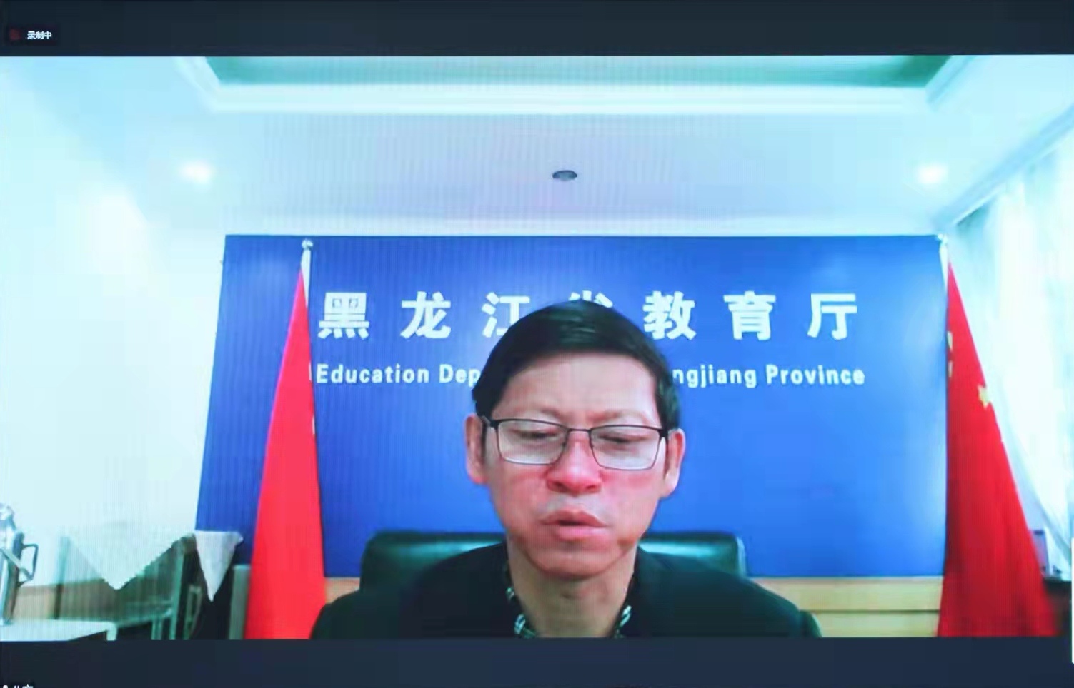 黑龙江省教育厅语言文字与教材管理处处长宗希云在仪式上致辞。他表示,此次国家通用语言文字能力提升对口在线培训的开展,是牡丹江师范学院和内蒙古兴安盟扎赉特旗两地语言文化生活中的一件大事,希望牡丹江师范学院在以习近平同志为核心的党中央的坚强领导下,以国家语言文字推广基地为依托,充分发挥高校在推广国家通用语言文字的引导和示范作用,为推广和规范使用国家通用语言文字作出新的更大的贡献。