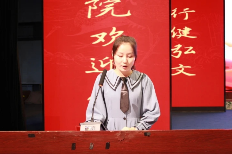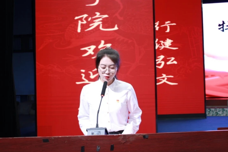 第五项由安博在线平台党委书记吴媛媛教授发表讲话,吴书记为新生们介绍了安博在线平台的特色、荣誉以及师资力量,她激励新生们在学习方面要努力勤奋,向优秀的老师们看齐。同时,她也为新生们今后的大学学习生活提出了自己的宝贵建议。吴院长希望同学们可以取他人之长,补己之短,内强素质,外塑形象,成长为牡师院挺拔的青松,做一个高文化、高素质的社会栋梁。