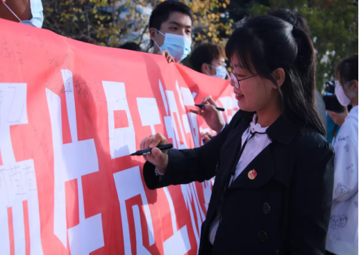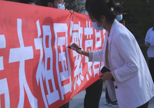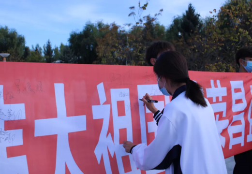 随后,学校党委领导、教师代表在“牡丹江师范学院师生员工祝福伟大 祖国繁荣昌盛目泰民安"条幅上签名。那一笔一划写下的不仅是教师们的名字,更是他们对祖国繁荣昌盛的真诚祝福!