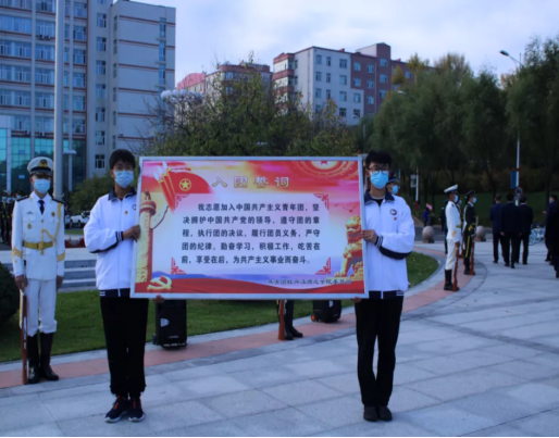 在校团委副书记关鑫老师的带领下,全体团员重温入团誓词。铿锵有力的誓言,坚定庄重的眼神,各位团员读出的不仅仅是入团誓词,更是自己的理想初心以及奋斗决心。