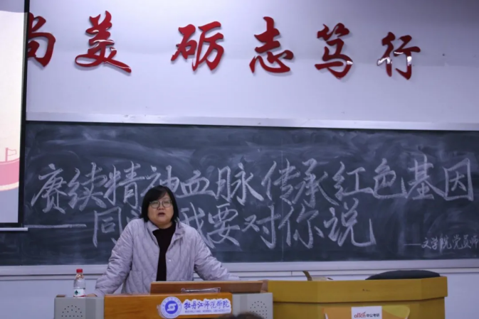 党课第三部分则主要讲述了抗争战士及其事迹。吴书记提到了以赵一曼、杨靖宇、赵尚志、陈翰章、周保中、“八女投江”、“十二烈士”等为代表的中华民族优秀儿女, 在与凶残的日本法西斯斗争中, 他们用自己的实际行动在中国抗战史上书写了光彩夺目的一页。他们崇高的爱国主义情操、英勇顽强的英雄气节、勇于献身的牺牲精神、可歌可泣的不朽功绩, 永远为后人所怀念和敬仰。吴书记还为同学们朗读了赵一曼女士为孩子写下的信,同样身为母亲,同样是对祖国的深沉热爱,信中的文字使得吴书记潸然泪下。