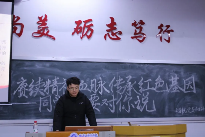 党课的第四部分,由刘松同学为大家讲解东北抗联精神的历史地位与时代价值。东北抗联精神是中华民族精神的重要传承,是世界反法西斯精神的重要内容,是我们宝贵的精神财富。为此,刘松同学也提出,希望同学们能向抗联战士们学习,无限深情地热爱祖国,奋不顾身地捍卫祖国,传承他们宝贵的精神财富,为实现中华民族伟大复兴的中国梦不断奋斗。