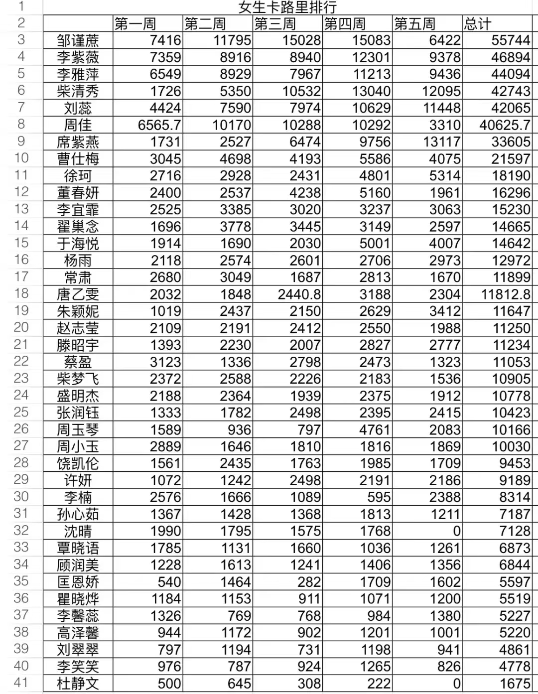 接下来,揭晓本次卡路里比赛的获奖名单,恭喜以下同学分别获得比赛的一等奖、二等奖与三等奖!