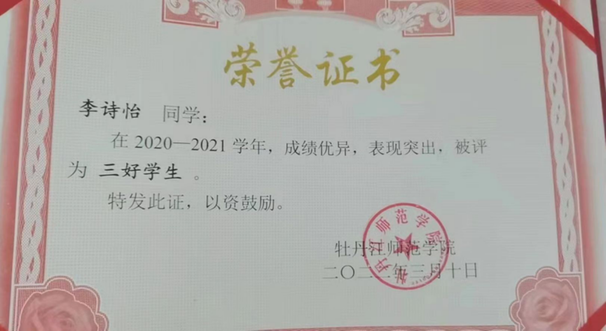 不忘初心,方得始终。在2020年,我以专业第一名的成绩考入牡丹江师范学院汉语言文学专业。习主席曾经说过,“青春是用来奋斗的。”我始终牢记这句话,在过去的两年里,我在学习上保持高度自觉,努力学好每门课程,在奋斗中保持清醒,在实践中保持真知,连续两年保持专业第一名的成绩,通过了英语四级考试,并且获得了“国家励志奖学金”、专业二等奖学金等荣誉。我始终坚信少年的初心,是可燎原的星火,不畏风雨,不惧险阻。