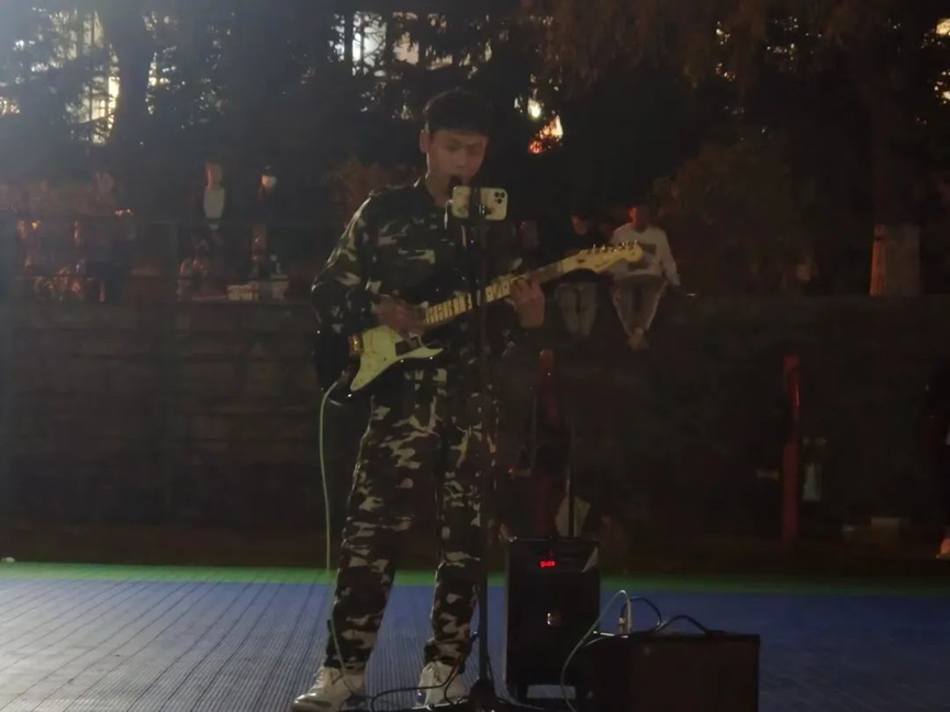 汉语国际教育班曹煜彤带来的吉他弹唱《孤勇者》,揭示了站立于时代潮头,正是因为有人在替我们负重前行,我们才得以相聚于此。