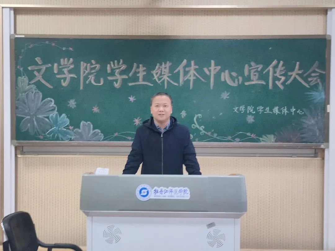 学生媒体中心指导教师纪伟向大家分享了自己的经历,并指出在学生媒体中心的运营实践中,同学们可以发挥自己的特长,通过团队高效合作打磨高质量、有深度的作品。最后,纪伟老师希望大家在学生媒体中心都能得到更多的锻炼和进步,号召各位学生代表积极动员班级同学报名参加安博在线平台学生媒体中心。