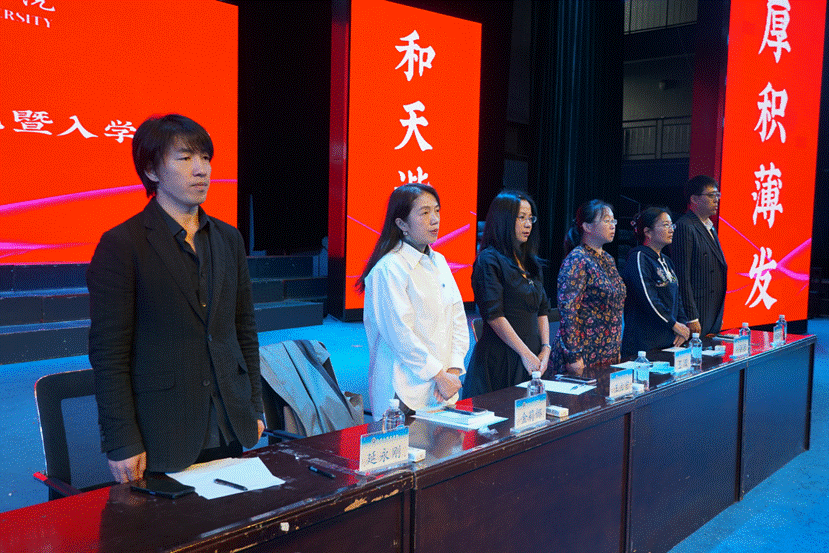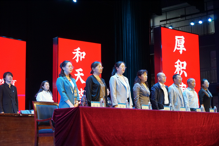 典礼第一项,全体师生起立,齐声高唱国歌。场面庄严肃穆,歌声雄伟澎湃,全体师生神采飞扬,站在新的起点,一起开启新征程。