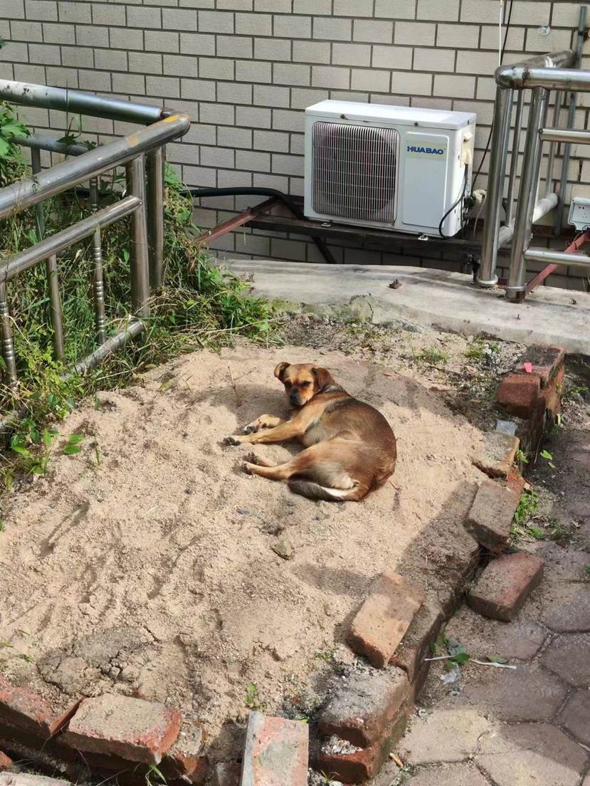 道路旁欢乐活泼的小狗