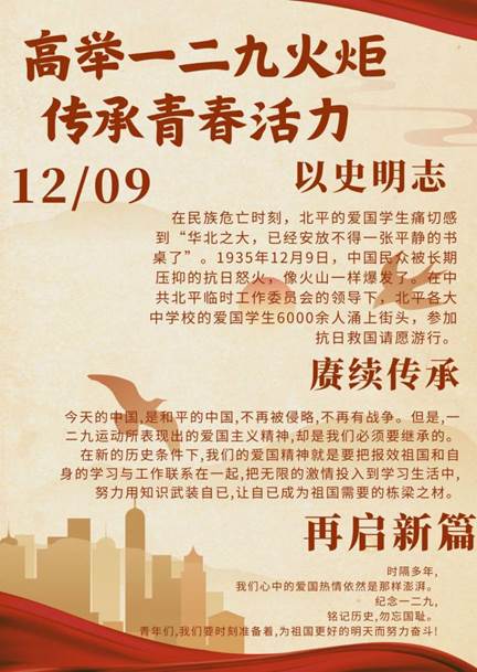 忆峥嵘岁月,展爱国情怀。本次活动有效宣传了爱国主义精神,培养了文院学子的使命感与责任感。历史的接力棒已然传到我们手中,我们肩负使命与担当,我们心怀梦想与希望,我们踏大步向前,为创造更加繁荣昌盛的明天而奋斗!