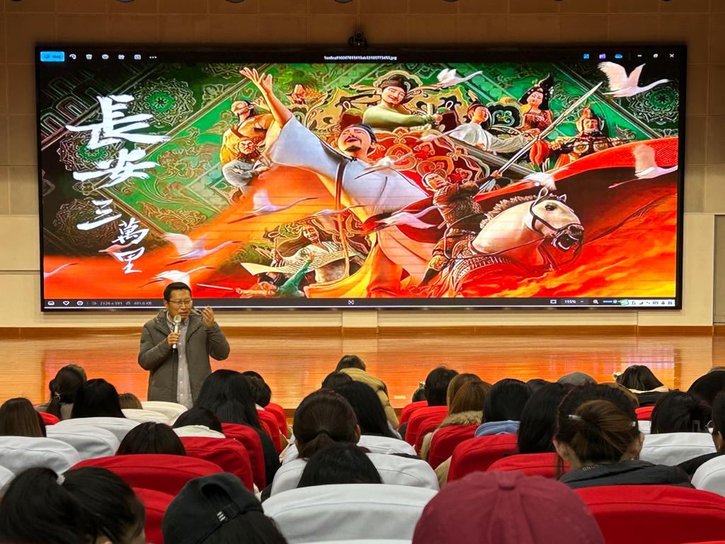 在电影正式放映前,付振华老师剖析了影片《长安三万里》的故事背景,带领大家一同探寻影片背后所蕴含的丰富历史与文化内涵。他强调,本次活动不仅仅是一场电影的放映,更是一次通过现代艺术形式连接古代文化的尝试,引领同学们穿越千年时光,共同领略盛唐文化的辉煌与韵味。