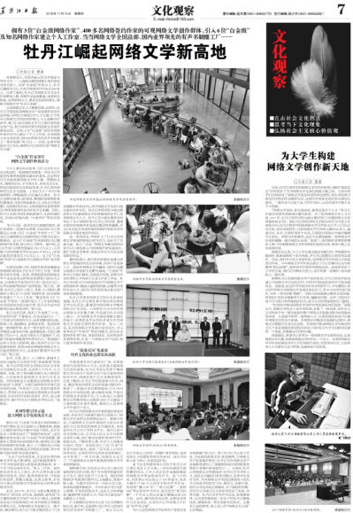 黑龙江日报以整版形式宣传网络文学发展特别是牡丹江师范学院网络文学创作班相关情况。