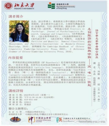 主讲人:金晶(香港教育大学中国语言学系助理教授)