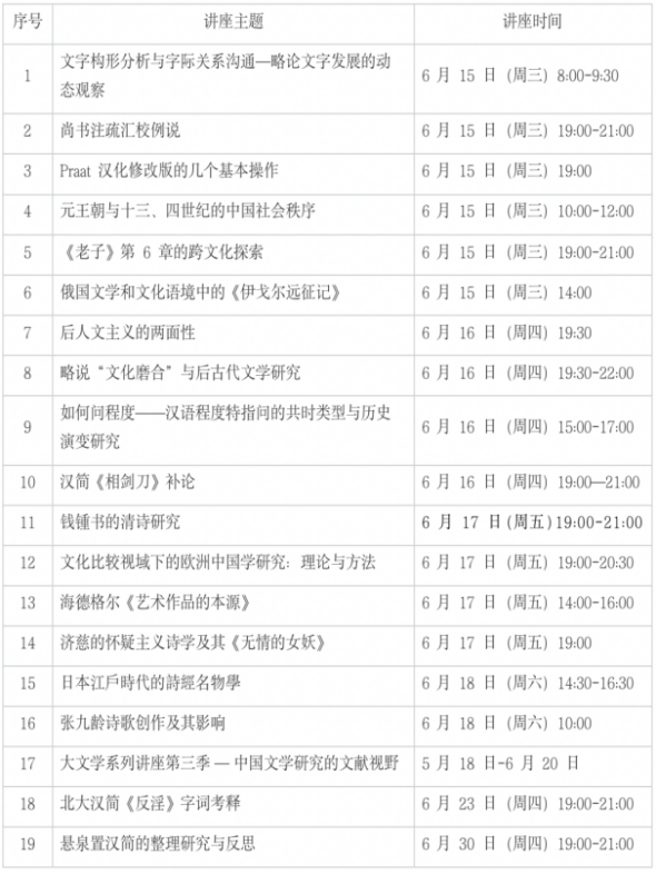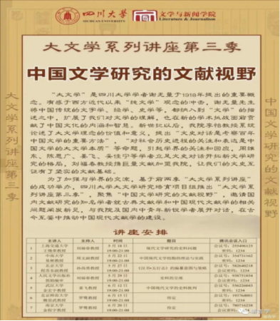 北大清华讲座、会务通学术会议平台、博雅好书、学术会议咨询、文学与影视批评、现当代文学研究动态、浙大安博在线平台、反思与奠基、文史哲学术会议信息平台、古文字微刊、简牍学、厦大人文研会。