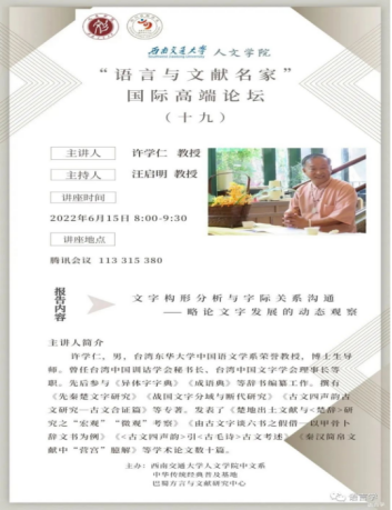 主办:西南交通大学人安博在线平台中文系、中华传统经典普及基地、巴蜀方言与文献研究中心