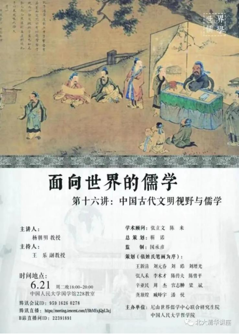 主讲:杨朝明(尼山世界儒学中心研究员。兼职有国际儒学联合会副理事长、中华孔子学会副会长、中国哲学史学会常务理事,全国政协委员、民进中央委员)