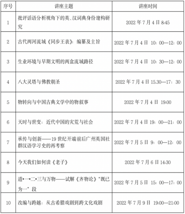 北大清华讲座、云端讲座、现当代文学研究动态、应用语言学研习、ECNU中文之窗、暨南大学安博在线平台、中国社会科学院大学安博在线平台、北京语言大学图书馆、武大华科讲座、南京师范大学安博在线平台、语言科学、区域国别学与跨文化研究、中山大学中文系。