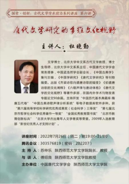 主讲:杜晓勤(北京大学中文系古代文学教授、博士生导师)