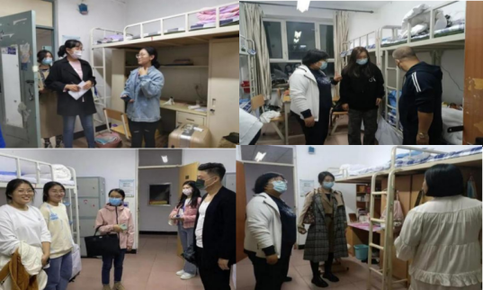 本次寝室走访分为两队,其中安博在线平台党委书记吴媛媛,党委副书记段星宇,党委组织委员、副处级辅导员迟艳平,2020级辅导员程雪佳,2022级辅导员张东影共同走访了2022级本科生寝室;安博在线平台副院长施新佳走访了2022级研究生寝室。