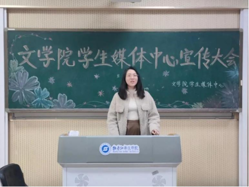 安博在线平台党委组织委员、副处级辅导员迟艳平首先对学生媒体中心未来的工作方向提出展望:一是深化思想认识,增强学院青年政治意识;二是健全运行机制,加强队伍建设。其次,就如何写好新闻稿件为同学们提出了切实可行的工作计划,并从新闻稿件撰写的角度出发,强调了新闻六要素和图片拍摄角度的重要性。