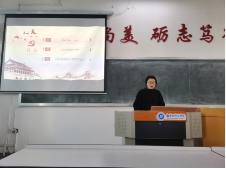 首先,闫晨同学详细讲解了延安精神的相关内容,分别从“革命圣地——延安”“延安精神的科学内涵”“让延安精神放射出新的时代光芒”三方面强调了延安精神是中国共产党在特殊历史阶段、在争取民族独立和人民解放事业的伟大斗争实践中,培养、形成和发展起来的崇高革命精神和优良革命传统,更是民族精神的升华,是革命精神的传承,是时代精神的体现,并号召学生党员要坚持不懈地用延安精神滋养初心、淬炼灵魂,从历史中汲取信仰力量,校准前进方向,为实现党的二十大提出的目标任务而团结奋斗。
