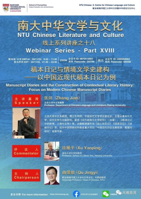 主题:稿本日记与情景文学史建构——以中国近现代稿本日记为例
