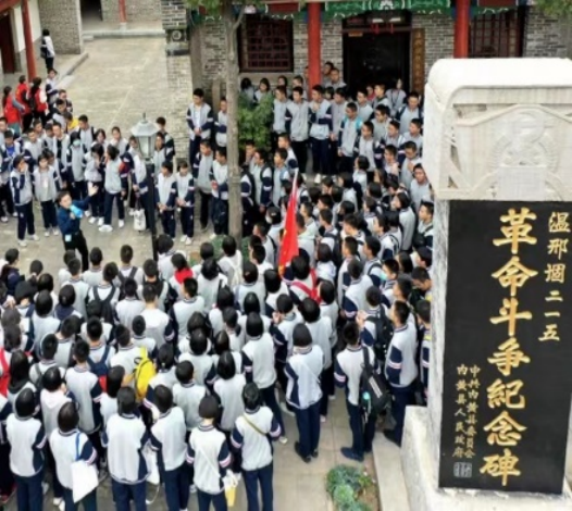 温邢堌村温氏祠堂,矗立着一座高大的纪念碑——温邢堌二·一五革命斗争纪念碑。碑文记载了1929年2月15日温邢堌一带农民在共产党领导下,反抗封建地主压迫剥削的悲壮斗争。