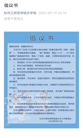 我院将继续贯彻全国语言文字会议精神,积极宣传国家语言文字政策法规,培养语言文字专门人才,开展语言文字规范化建设,聚焦铸牢中华民族共同体意识。为延续推普周活动,我院将面向大一新生开展常用字考核,举办系列学术讲座与学生活动,继续发挥国家语言文字推广基地的作用,以行之有效的工作迎接党的二十大胜利召开!